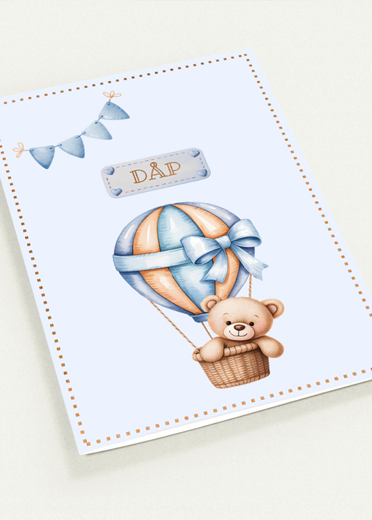 Dåpskort "DÅP" bamse rosa/blå dobbelt kort m/konvolutt